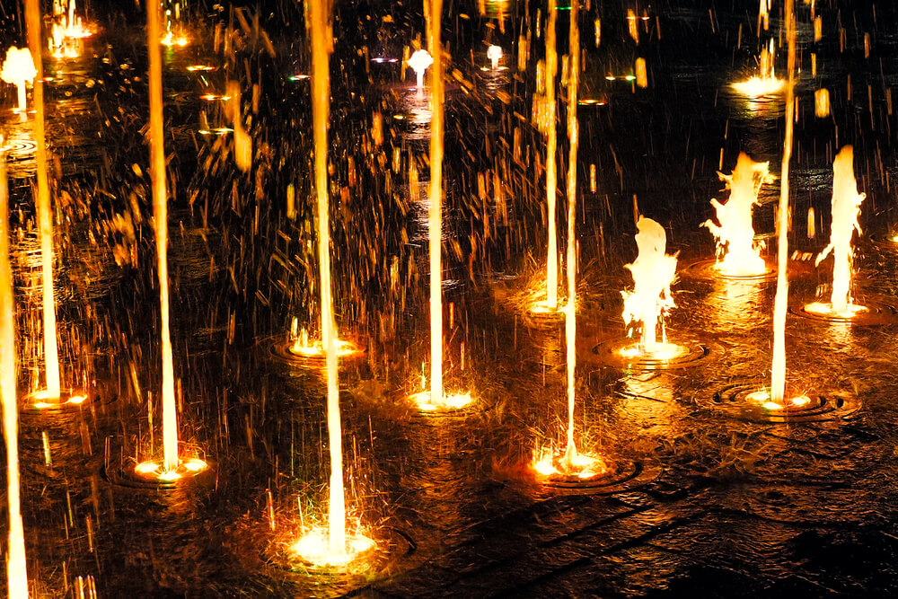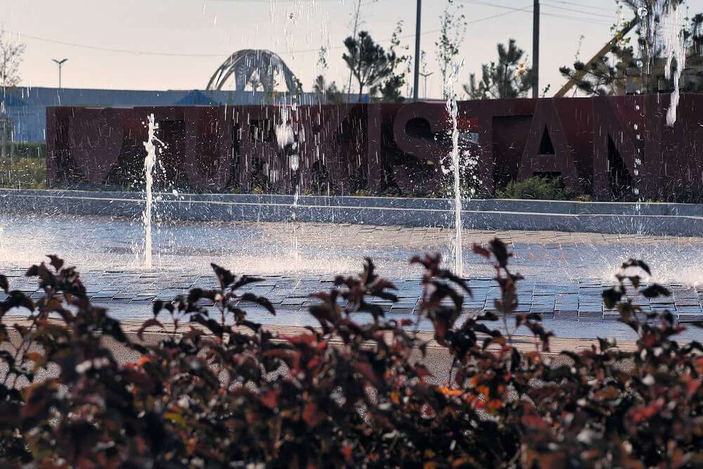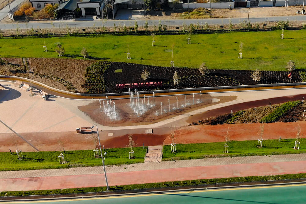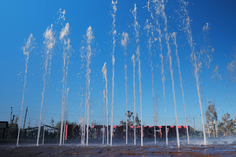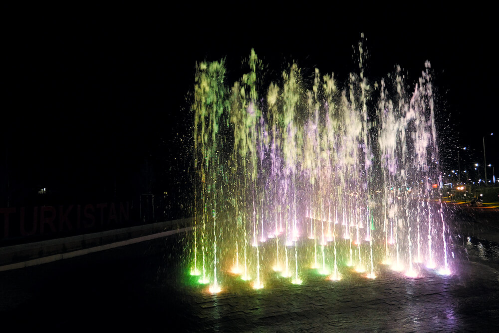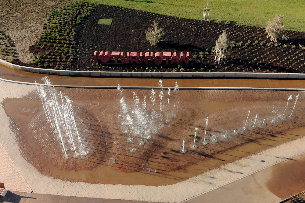 Пешеходный фонтан на территории линейного парка имени Б Саттарханова в г. Туркестан Казахстан